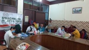 इसी क्रम में नगर पालिका परिषद रुद्रप्रयाग के सभागार में स्वास्थ्य विभाग की टीम द्वारा पर्यावरण मित्रों, मोहल्ला स्वच्छता समिति के सदस्यों एवं नगरपालिका कार्यालय स्टाफ का स्वास्थ्य परीक्षण किया गया। इस अवसर पर स्वास्थ्य विशेषज्ञों ने उपस्थितजनों को स्वच्छ वातावरण एवं व्यक्तिगत स्वच्छता के महत्व पर विस्तृत जानकारी प्रदान की।