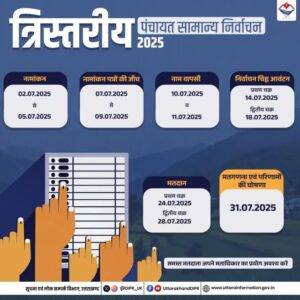 रुद्रप्रयाग में पंचायत चुनाव की अधिसूचना जारी , 24 जुलाई को होगी वोटिंग 02 जुलाई से नामांकन , 31 जुलाई को मतगणना और परिणाम होंगे घोषित रुद्रप्रयाग / नवक्रान्ति समाचार त्रिस्तरीय पंचायत सामान्य निर्वाचन में रुद्रप्रयाग जनपद की समस्त ग्राम पंचायतों के सदस्यों, ग्राम प्रधानों, क्षेत्र पंचायत सदस्यों एवं जिला पंचायत के सदस्यों हेतु निर्वाचन…
