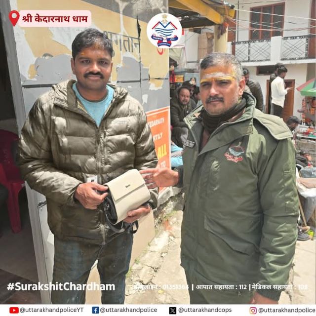 केदारनाथ धाम में आन्ध्र प्रदेश से पहुंचे श्रद्धालु जिनके पर्स में 50 हजार रुपये नगद कैश थे जो कई खो गया। जिसे ड्यूटी पर नियुक्त पुलिस कार्मिकों द्वारा अथक प्रयासों से पर्स को बरामद कर श्रद्धालु के सुपुर्द किया गया।